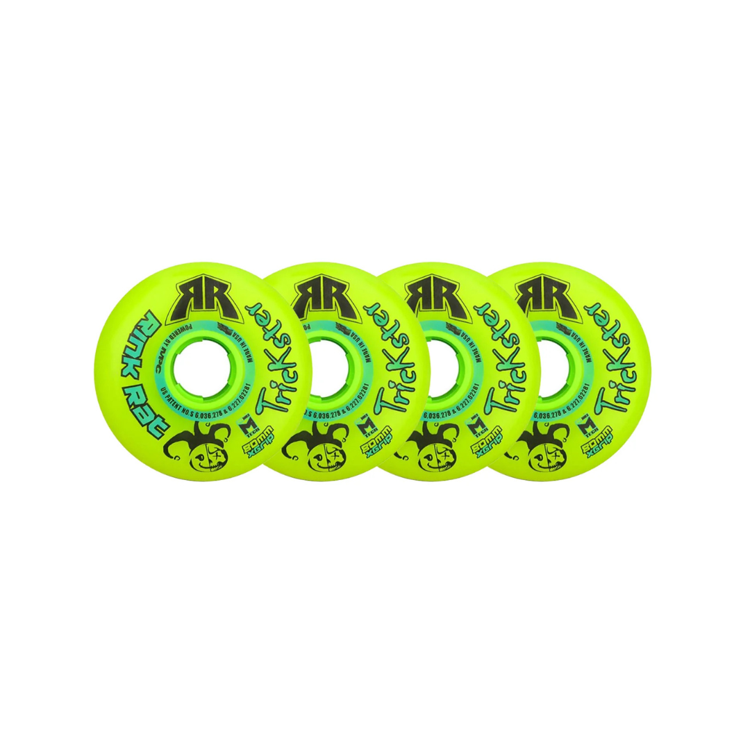 The Trickster is Rink Rat's latest game-changer, built with a proprietary blend of MTech and Magic Speed materials that deliver serious speed, grip, and rebound on tile surfaces. No break-in needed—these wheels are ready to roll the second you lace up.