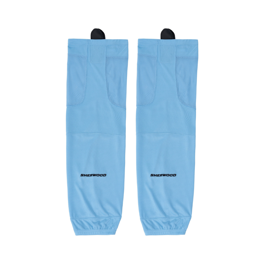 The Sherwood SW150 Hockey Socks are built with high-friction poly microfiber which provides great durability and a lightweight design. These are a great choice for teams looking to outfit the squad for a more affordable price and can be used for games and practices. They have interlock inserts at the thigh and ankles which allow for more mobility, comfort, and abrasion resistance. Mesh panels have been strategically placed behind the knee for added ventilation and they feature an embroidered Sherwood logo on the front for a professional look.